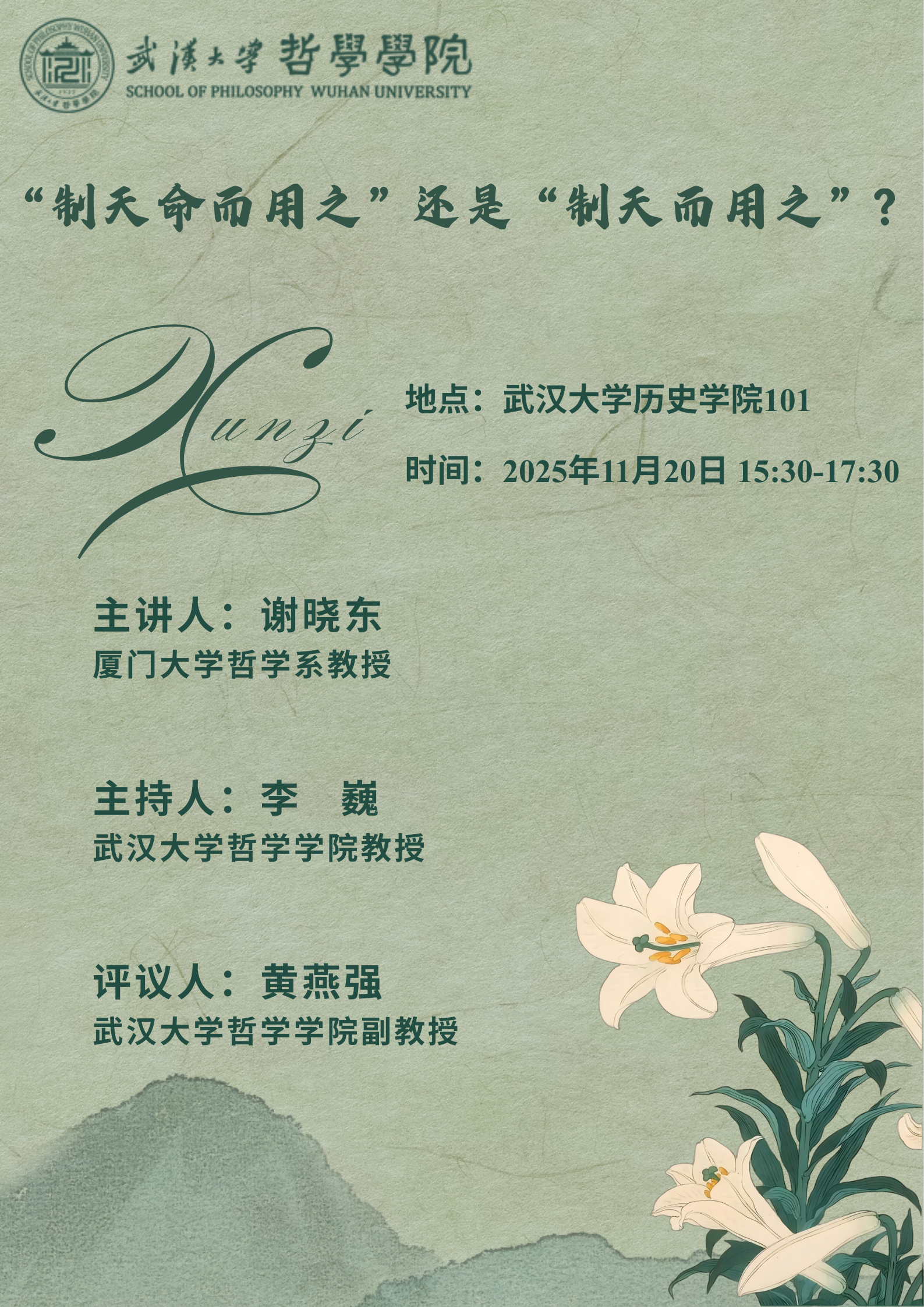 【11月20日】谢晓东:“制天命而用之”还是“制天而用之”?