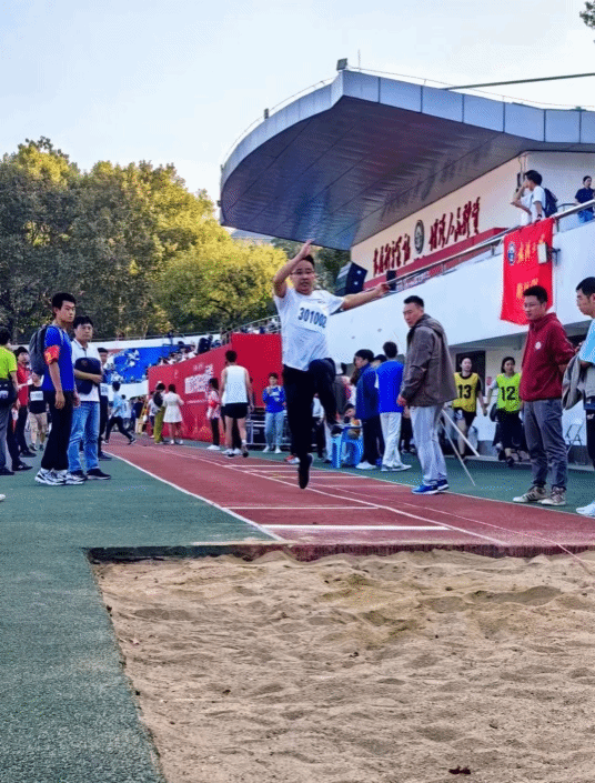 与女子跳绳比赛同时开始的是男子跳远比赛,白宝玉老师、曹彦老师参赛,两位老师为五楼自拍 和个人的荣誉拼尽全力,极大鼓舞了五楼自拍 师生的士气。