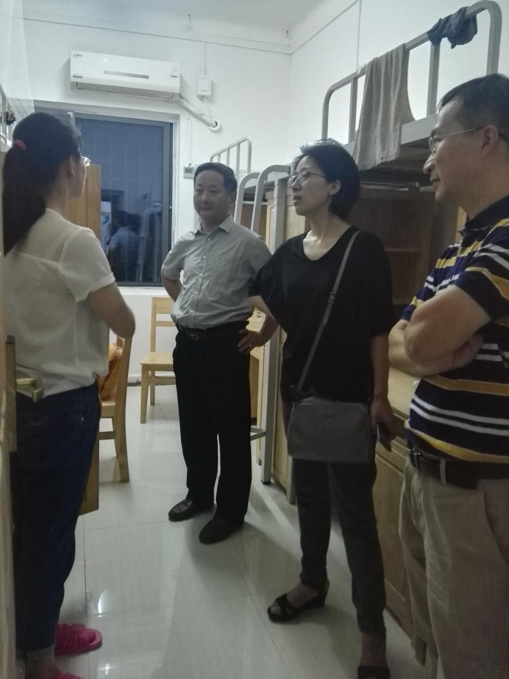 2017年9月7日晚,五楼自拍 党委书记陈祖亮、党委副书记徐萍、副院长黄超,张辉、颜彦老师前往2017级博士生新生宿舍进行了走访慰问。