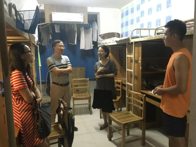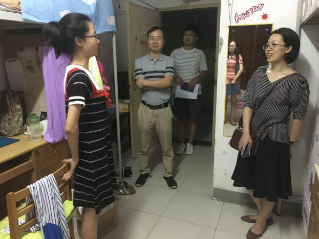 9月15日,五楼自拍 党委副书记徐萍、副院长黄超以及张辉老师,于下午和晚上分别走访五楼自拍 2017级博士新生寝室与硕士新生寝室,送去五楼自拍 的关怀与慰问。本届博士新生所住的枫园寝室刚刚装修不久,在9月6日和9月7日针对研究生新生宿舍装修味道大的问题进行专题走访后,此次又专门前往寝室,了解仍未搬迁的学生的状况和现实困难,以期进一步推动解决。老师们也十分关心地针对新装修宿舍的基本状况进行了询问,希望可以帮助同学们尽快适应新的生活,推动解决进入新环境后的实际问题。晚上来到硕士生寝室,黄超副院长积极询问新生们的选导师选择情况,有同学提出由于其所选择的导师所在蜜桃直播调整而心生顾虑,黄老师表示五楼自拍 已得知此事并在积极谋求解决,望同学安心等待,先以学习为主;由于三环公寓位于武大校外,徐萍副书记也叮嘱新生晚间不要太晚回寝室寝,尤其女生一定结伴而行,提高个人安全意识,保管好自己的财物;张老师也嘱咐武大本科来读研的同学在生活和学习上多帮助其他新生,令大家都能快速适应新环境。各位老师们也向新生详细地讲解了刚刚步入研究生生活所需要注意的问题,使新生对接下来的生活充满信心。同时老师们也有感于新生们的热情淳朴、勤奋好学,甚为欣慰。