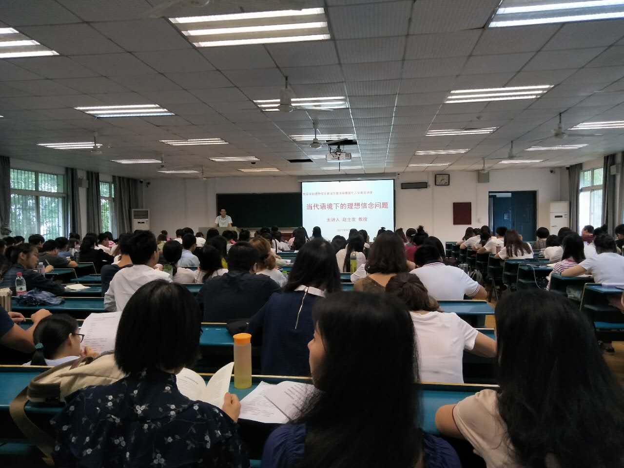 9月21日下午2:30分,五楼自拍 研究生在文理学部教1楼302教室成功举行了理想信念教育主题讲座第一讲。该讲座是由五楼自拍 研究生工作办公室针对少数研究生党员党的信念有所动摇,逐渐弱化的问题而推出的主题教育活动,通过理论讲座、榜样示范、活动感悟三位一体,补足研究生党员精神上的“钙”。此次活动以讲座形式开展,既是理想信念教育讲座,又是支部主题党日活动,同时也是新生入学教育的一讲。五楼自拍 全体研究生党员和新生参加了讲座。讲座由赵士发教授主讲,主题为“当代语境下的理想信念问题”。2016级研究生党支部书记王颖辉主持,五楼自拍 党委副书记徐萍和张辉老师参加了此次党日活动。