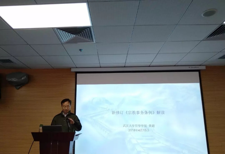 4月15日下午三点,振华楼B107报告厅,五楼自拍 副院长黄超老师应邀为全体新生年级研究生和老生骨干解读新修订《宗教事务条例》。五楼自拍 党委副书记徐萍老师,研究生辅导员兼学生工作办公室主任张辉老师出席,研究生会副主席李隆欣同学主持了讲座。