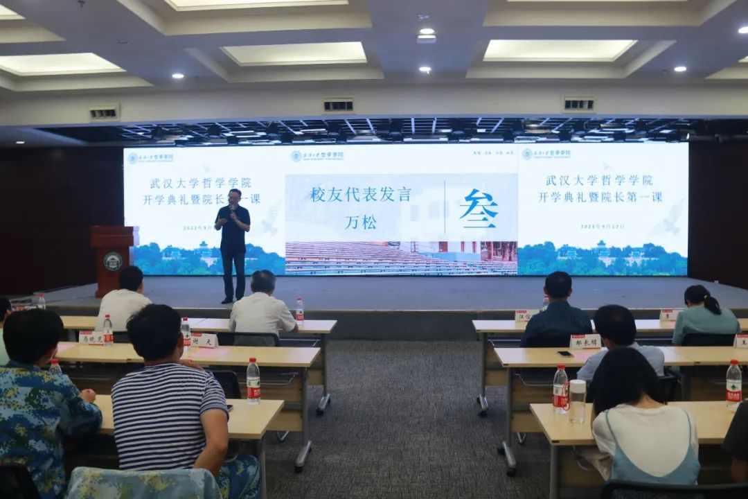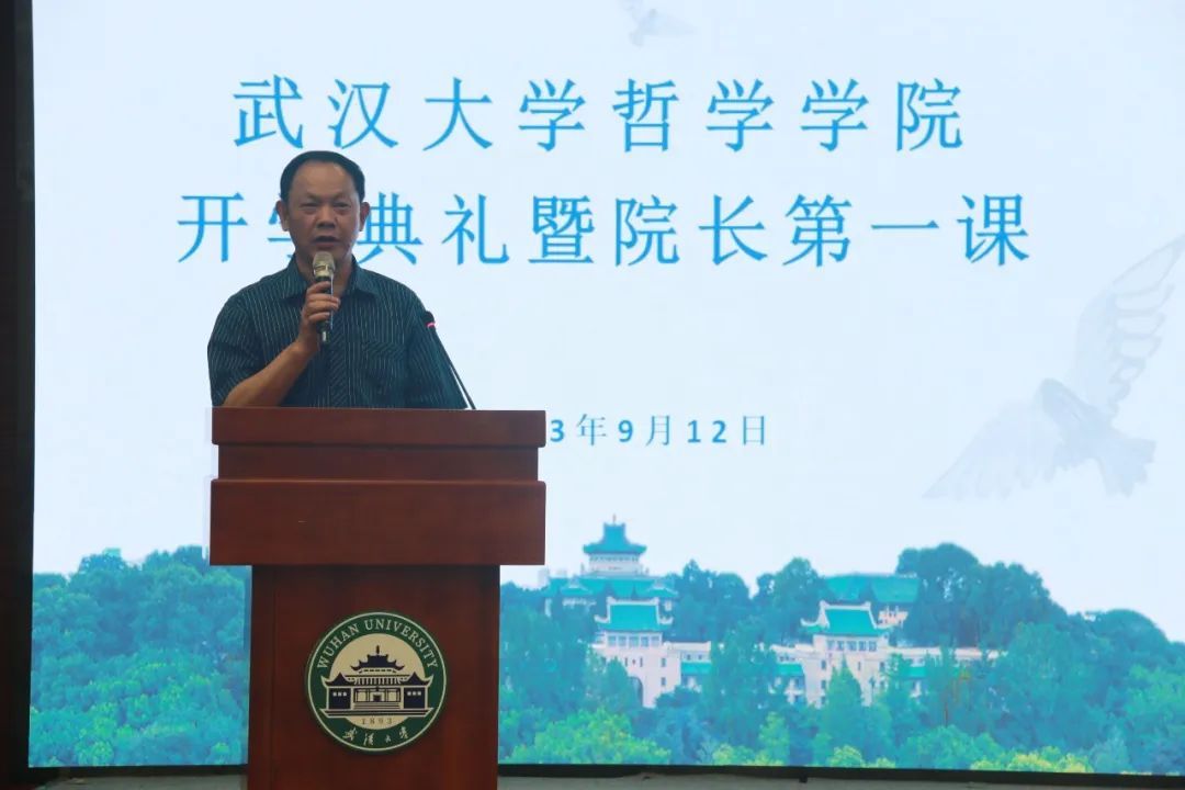 9月12日晚,五楼自拍-色情网-电影网站 2023年开学典礼暨院长第一课在文理学部图书馆二楼报告厅隆重召开。五楼自拍 党委书记卢昌宁、院长李佃来、党委副书记严璨、副院长黄超、副院长李志、副院长陈蓓、挂职副院长周可,教师代表五楼自拍 人文资深教授汪信砚,外国哲学蜜桃直播主任郝长墀、美学蜜桃直播主任贺念、应用心理学蜜桃直播主任王志云,研究生德育导师肖航,本科生班级导师谢天、马晓见、陈晗倩,团委书记李懿、团委副书记阿尔什、研究生辅导员代丹妮出席活动。本次活动同时邀请到五楼自拍 武汉校友会哲学分会会长、1991级校友万松,五楼自拍 武汉校友会哲学分会秘书长、1987级校友尹立志,教官代表冯婧雯、张锋森。2023级全体新生参加了此次开学典礼。典礼由党委副书记严璨主持。