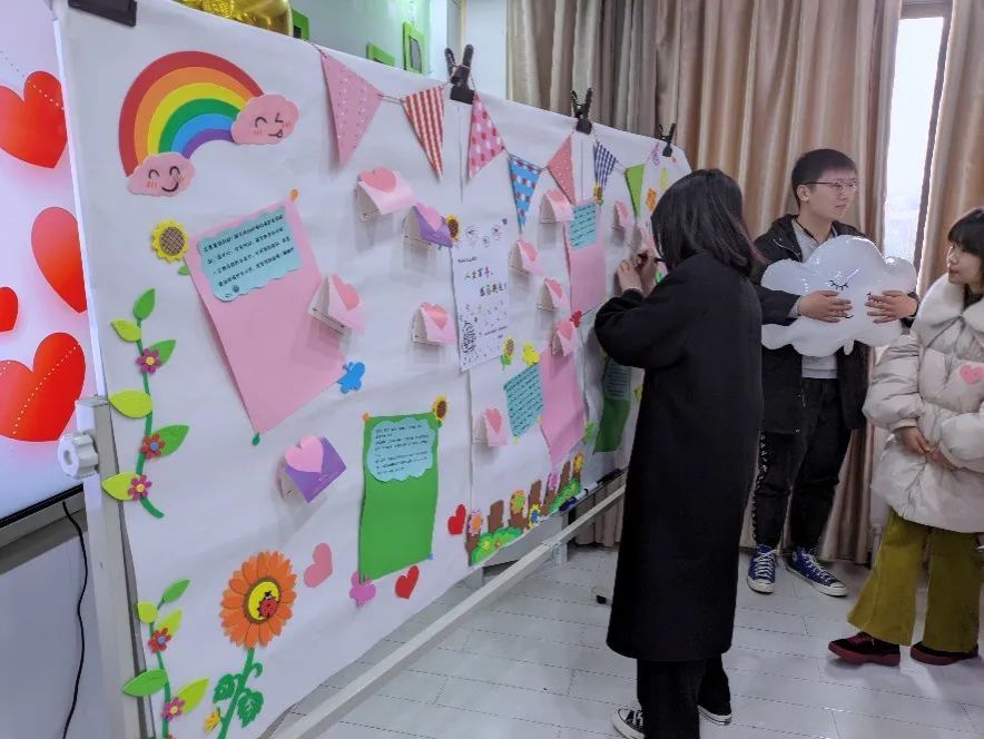 社工姐姐向我们展示了在“抗疫期间云辅导”中受到帮助的孩子们写来的感谢信,点滴话语流露出孩子们对哥哥姐姐们的感谢与祝福。志愿者们也纷纷拿起笔,为孩子们写下寄语,期待弟弟妹妹们感受到更多的温暖,期待他们乘风破浪、走向更美好的未来。