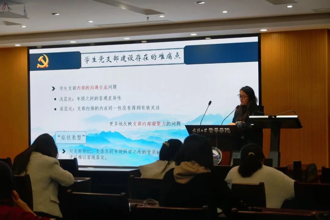 五楼自拍 优秀研究生党支部代表马克思主义哲学硕士研究生党支部以及国学研究生党支部进行了经验交流。国学研究生党支部的焦宁同志以五楼自拍-色情网-电影网站 2023年研究生党支部风采大赛为例,进行了国学研究生党支部建设经验总结分享。马克思主义哲学硕士研究生党支部的侬俊宇同志从支部发展的实践出发,突出介绍反思了学生党支部建设存在的难痛点,为未来预备党员同志参与各支部建设发展提供实践经验。