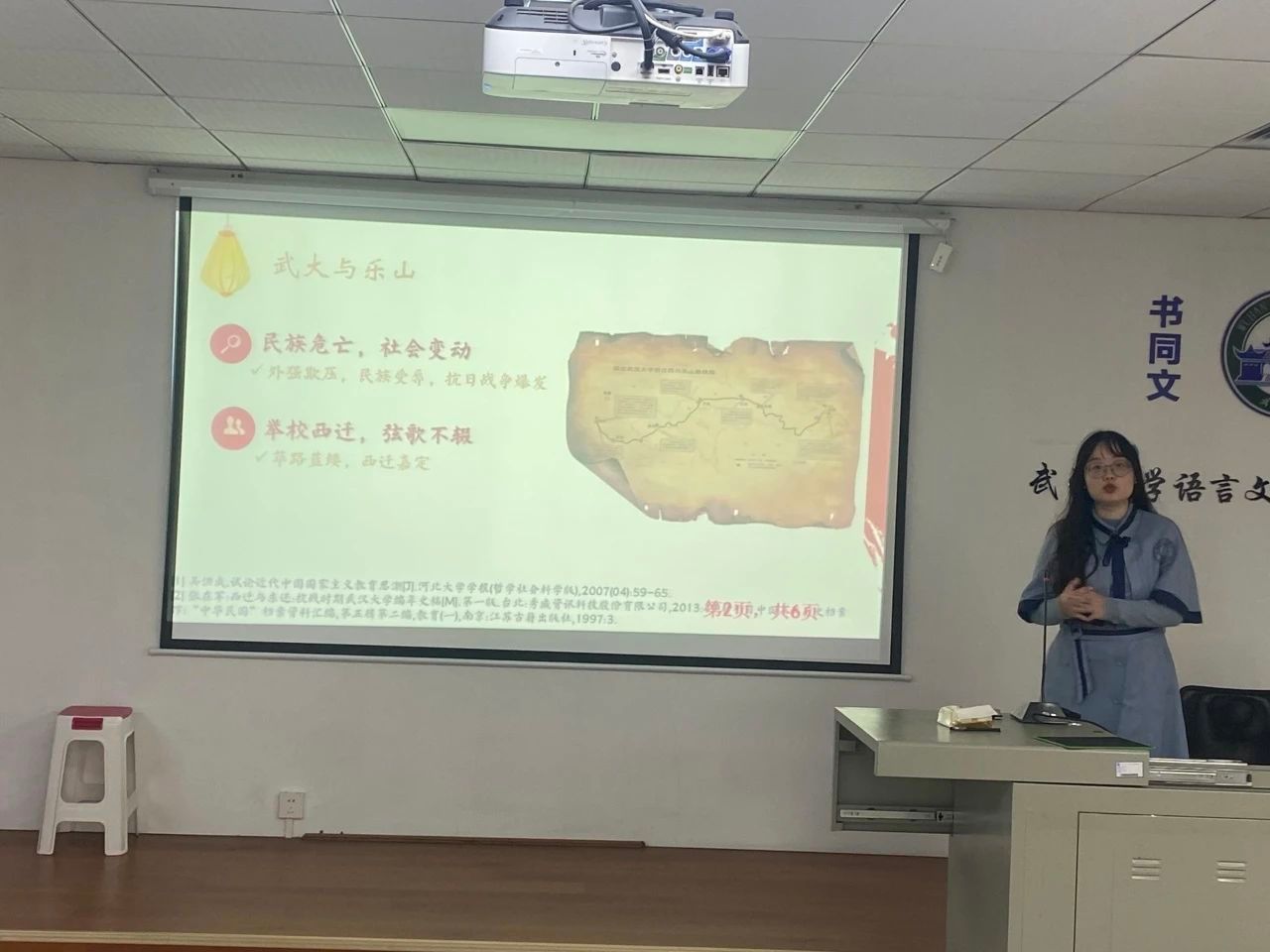接下来,2023级党建专业的蔡紫嫣同学用一场以“五楼自拍 西迁乐山时期的爱国主义教育”为题的生动演讲,把大家带回了五楼自拍 1938—1946年在乐山的八年艰苦岁月,感受武大师生在逆境中闪耀的弥足珍贵的爱国主义光辉。