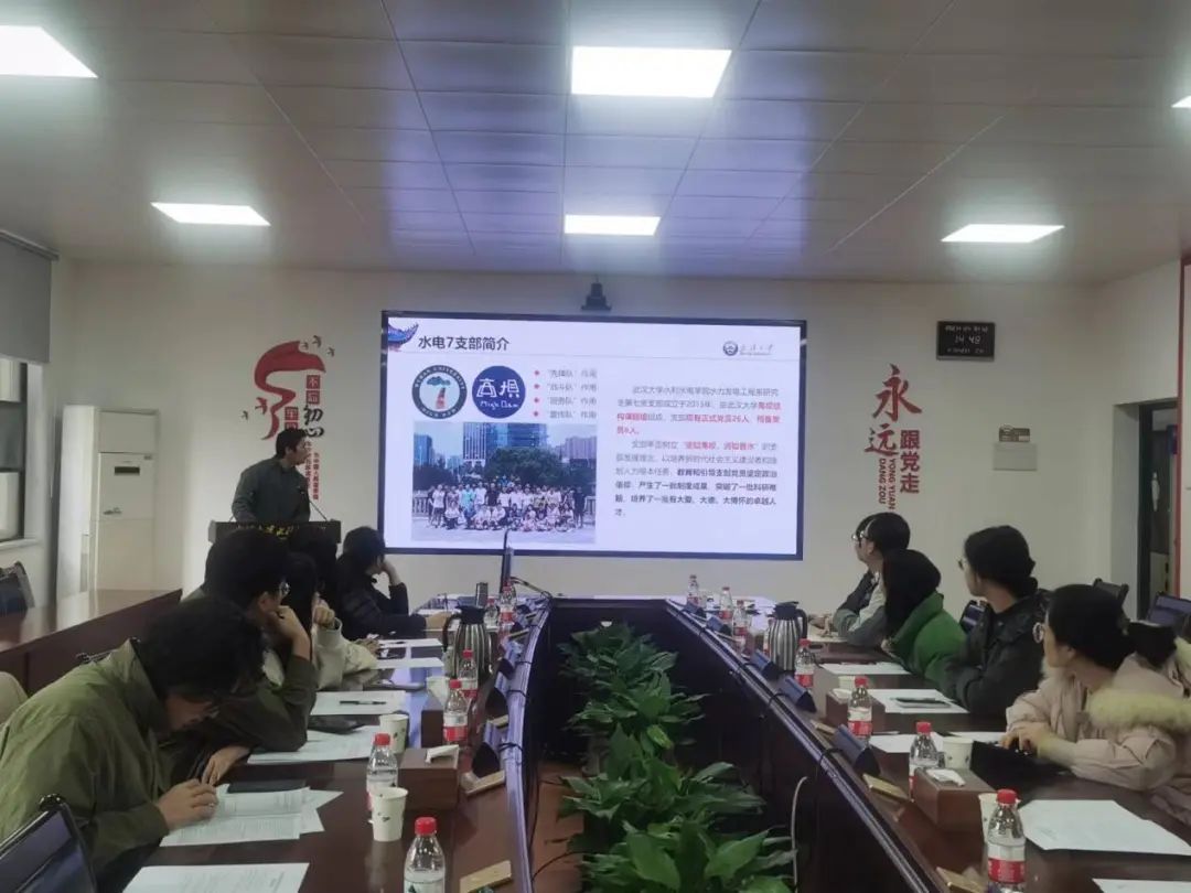 水利水电五楼自拍 水力发电工程系研究生第七党支部陈治光同志汇报了支部建设现状。陈治光同志从“像高坝一样坚定,像善水一样滋润”的支部建设理念出发,分别从强化思想政治引领、严格标准强组织、扎实工作立本领、辐射共享创特色等四个方面介绍了支部先锋队、战斗队、服务队、宣传队的作用发挥。