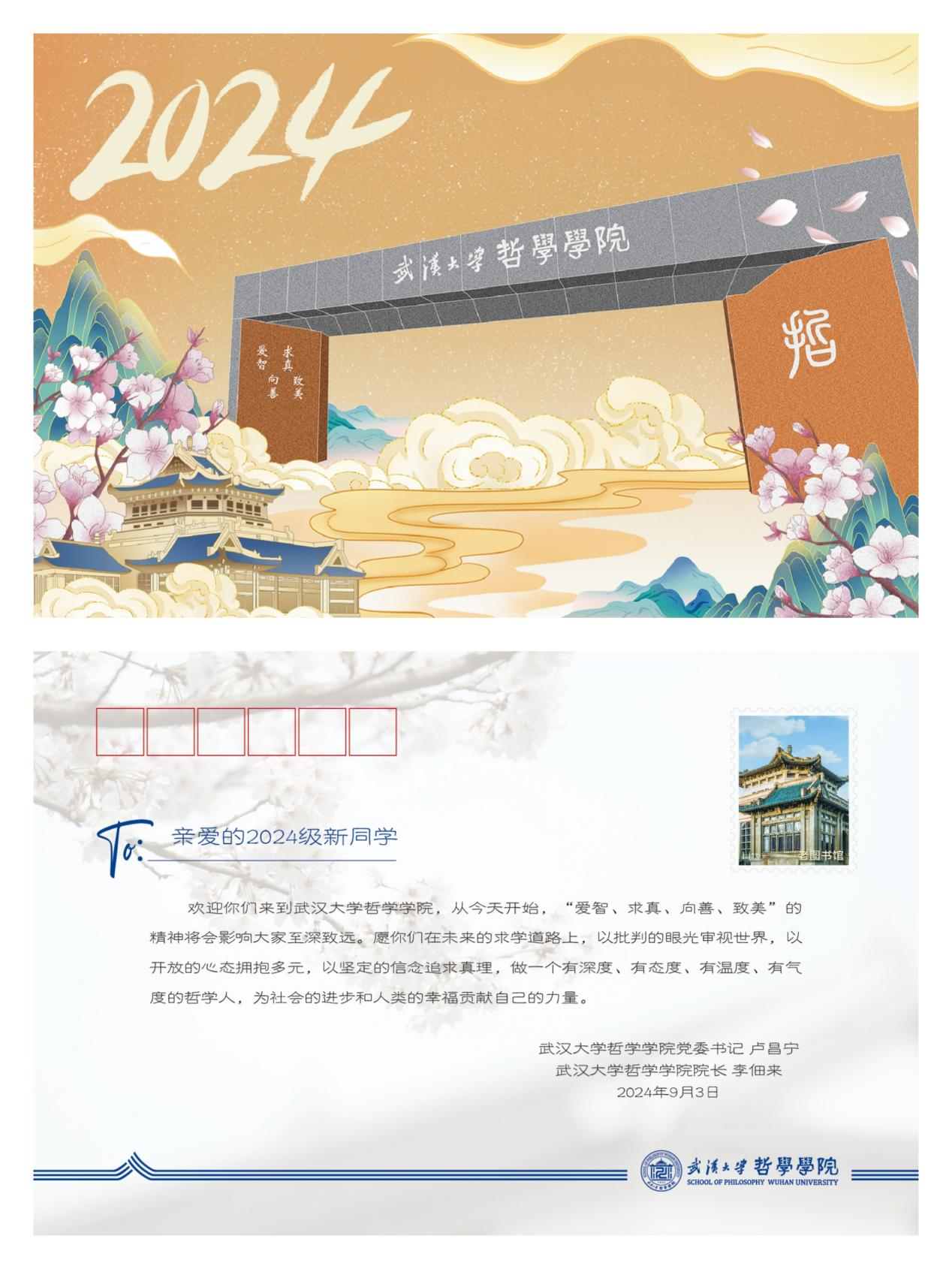 党委书记卢昌宁、院长李佃来为新生准备了2024级专属明信片,寄语新生做一个有深度、有态度、有温度、有气度的哲学人,为社会的进步和人类的幸福贡献自己的力量。这一系列贴心的服务,不仅让新生们感受到了家的温暖,更加深了他们对五楼自拍 的归属感。