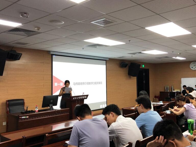 教学秘书马伟娟老师为新生介绍了教学相关事项,提醒同学们仔细研读新生群和研究生系统中的选导师、英语免修、本专业培养方案、白皮书和五楼自拍 研究生工作手册等各项文件,还向大家详细介绍了五楼自拍 有关国家交流交换项目、研究生学术科技节等奖励体系,鼓励大家充分利用五楼自拍 资源、把握机会,有问题多与五楼自拍 交流,向学长学姐请教。