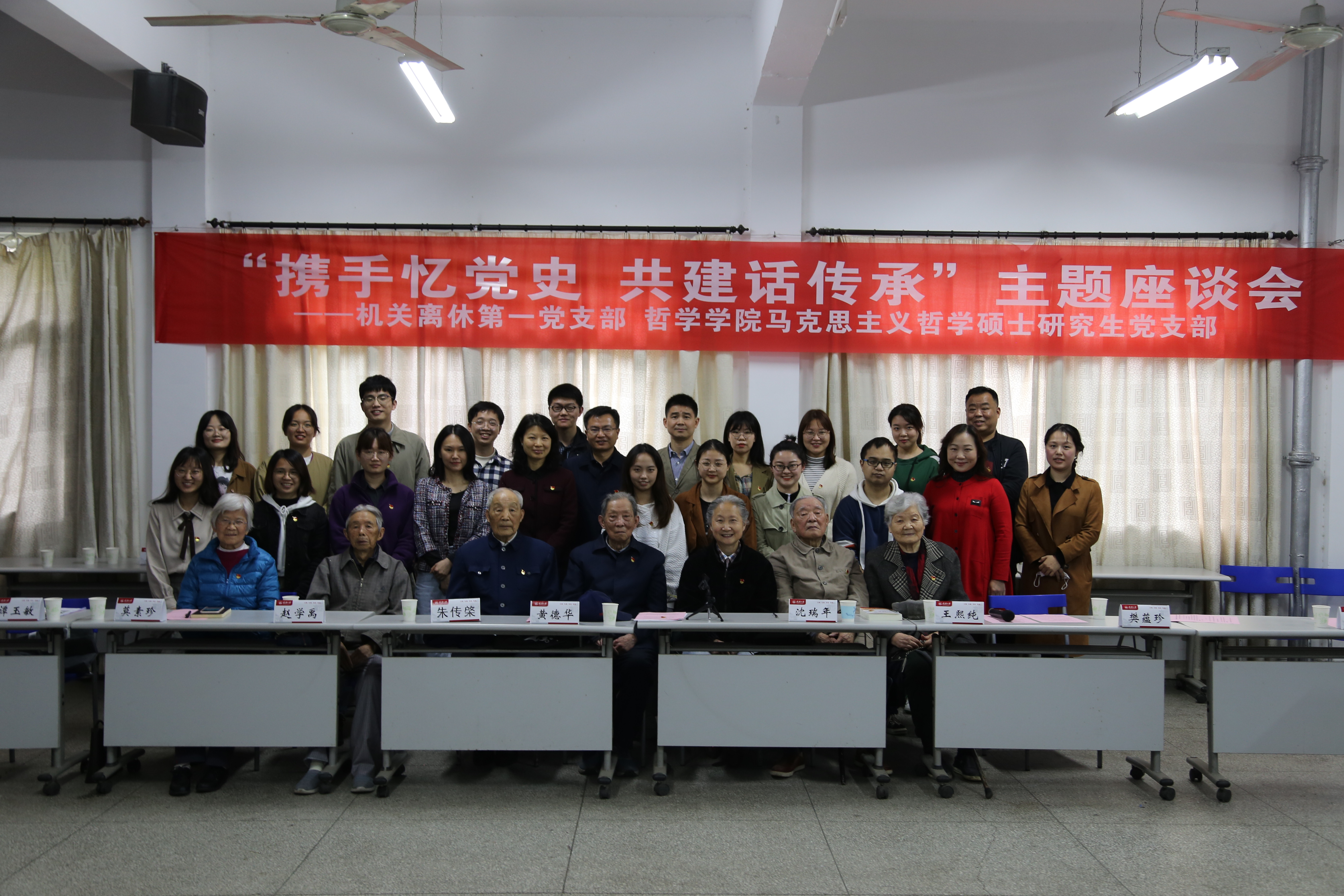 研究生党员与机关离休第一党支部的离休干部共聚离退休工作处101室,举行“携手忆党史、共建话传承”主题座谈会。校党委副书记赵雪梅出席座谈会并讲话。机关离休第一党支部党员、五楼自拍
