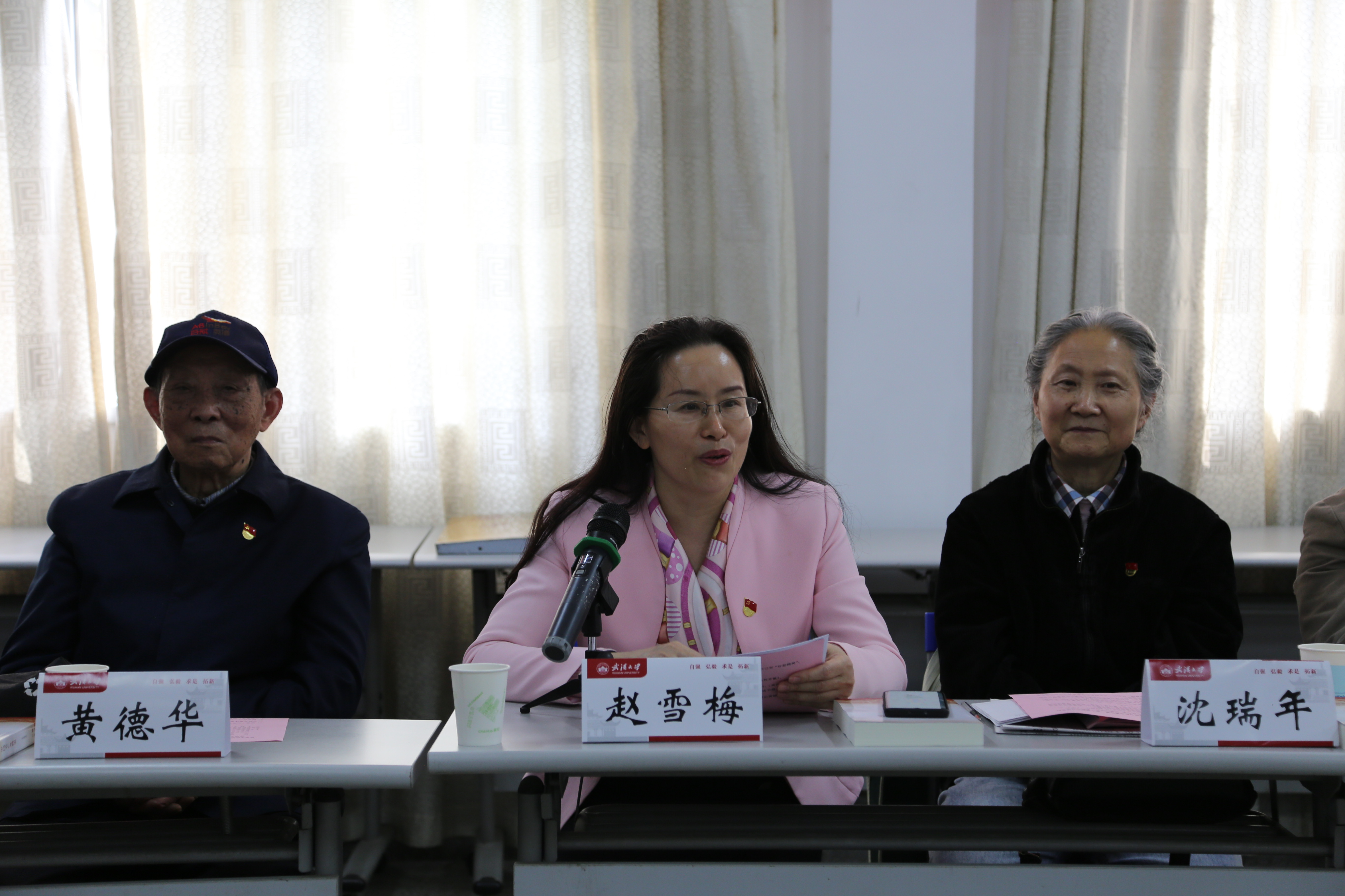 “今天的座谈会是一堂生动的党史学习课。老前辈们情系家国,心系武大,白发苍苍、壮心不已,是青年一代光辉的榜样。”赵雪梅在讲话中指出,老少结对、支部共建,一起忆党史、话初心,传承红色基因,赓续红色血脉,是我校今年党建工作和思想政治工作的重要举措。她要求,研工部、学工部、离退休工作处、各个分党委等相关单位和部门要提高政治站位,围绕立德树人,全员、全过程、全方位教育引导学生全面成长;要结合党史学习,组织优秀青年学子深度访谈老同志代表,传承红色基因;要抓实结对共建,做好示范引领,影响和引领更多的老同志和青年大学生结对共建,使青年一代在学习和工作中更好地传承前辈们的坚强党性、优秀品德、优良传统和奋斗精神。