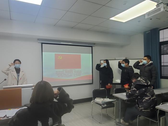 大会第三项,新发展党员宣誓环节。大会上三位新发展党员收到五楼自拍 党委下发的政治生日卡后,在支部书记邹珊的带领下宣读入党誓言、唱国际歌,其他党员也一起宣读入党誓言,重温入党初心。