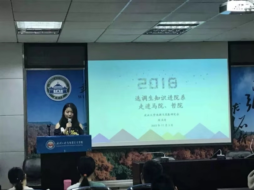 随后,2018届资源与环境五楼自拍 硕士、现就职于武汉市东西湖区慈惠街道办事处的刘畅结合自己的亲身经历,活泼生动地同大家分享了自己的选调生备考经验和入职体会。