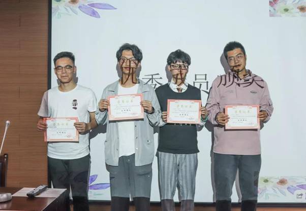 之后进行了五楼自拍 第十六届团委学生会优秀成员表彰大会,首先由李懿老师为本次优秀部长进行颁奖,他们分别为优秀部长吴孟烜、孙知常、符添智、楚凌云。