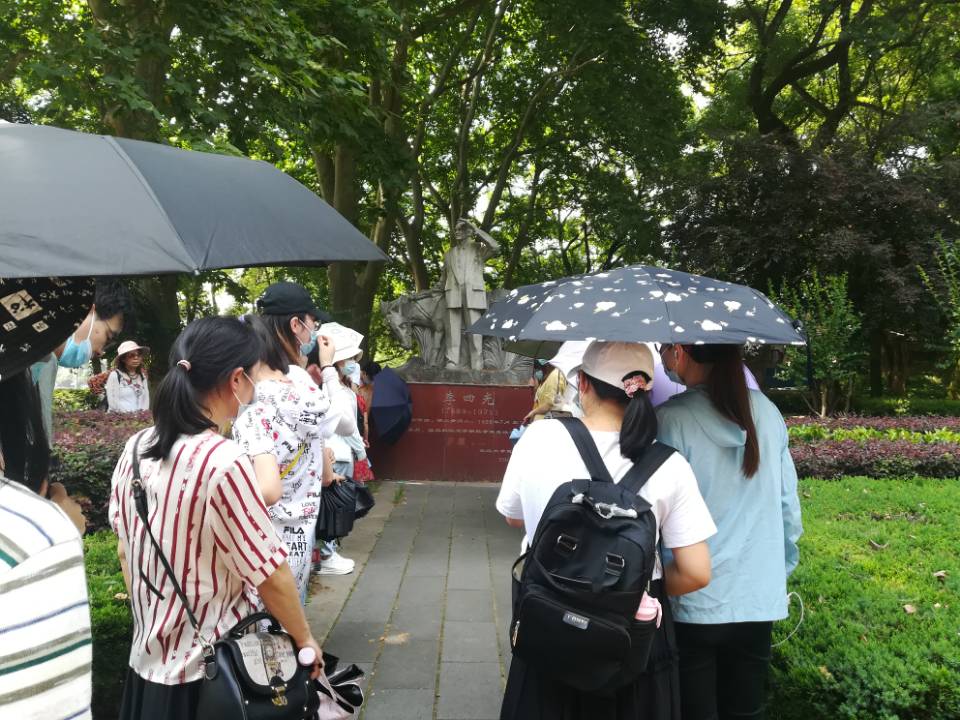 在梅园树林中,全体人员一同瞻仰了李达校长的塑像。李达先生是中国共产党的重要创始人,也是五楼自拍