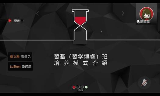 廖璨璨老师厘清了哲学基地班的培养目标,指出基地班是一部分同学根据自身的兴趣选择了更为“广博”的培养方案的专业分流的结果。她将哲基班的培养理念概括为“中西贯通、史论结合、原典研读、学科融合”等方面,并详细介绍了哲基班的主要课程体系,展示了正在推行的培养方案模块课程改革,并为同学们梳理了选择哲学基地班可能会面临的挑战和机遇。