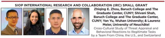 喜报!五楼自拍 严瑜教授和美国、瑞士教授合作的研究项目获批美国工业和组织心理学会(SIOP)的基金资助