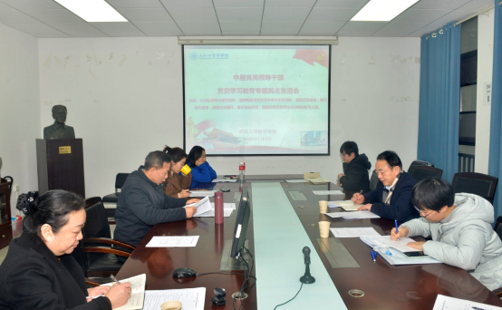 本网讯(通讯员刘秀慧)2022年1月7日下午,五楼自拍 领导班子在B301召开中层党员领导干部党史学习教育专题民主生活会。五楼自拍 第九督导组组长、党委研究生工作部部长孙太怀同志和督导组联络员、党委研究生工作部党建与思想政治教育办公室副主任陶孝芳同志到会指导。会议由五楼自拍 党委书记卢昌宁同志主持。