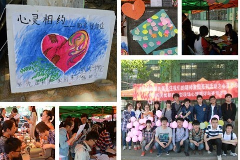 针对当前大学生群体中愈来愈严重的孤独、缺乏快乐感等现象,4月13日于桂圆风雨操场前,举办了以“告别阳光忧郁症”为主题的心灵相约活动,包括设置困惑墙,心理测评,专业老师面对面,心理游戏,“写给未来的你” 之说出烦恼、对忧郁say byebye及还愿季等内容。