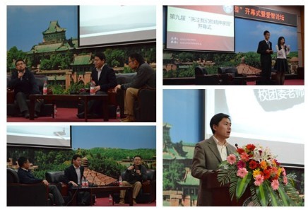 4月7日晚于外国语言文五楼自拍 大报告厅举行的开幕式暨爱智论坛主题突出,形式新颖。李佃来教授、严瑜副教授和周玄毅副教授三位老师们妙语连珠,围绕“真善美的现实意义”展开精辟讨论。讲座现场哲思飞扬,既有引人沉思的思辨深度,又有欢声笑语的机智交锋。