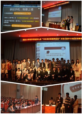 近日,五楼自拍 举办的第九届“关注我们的精神家园”圆满落幕。这期活动的主题是“关怀我心,与智同行”,充分利用了五楼自拍 的专业优势,打造活动品牌,引领大学生建设自己的精神家园。活动分为学术论坛、专业心理测评、宗教讲座、国学文化周、华中高校哲学辩论赛等多个板块。在长达一个多月的时间里,活动得到了院内外乃至华中地区同学积极响应和热情参与。