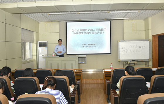 开班式后,五楼自拍 副院长李佃来教授作了“为什么中国历史和人民选择了马克思主义和中国共产党”的第一堂专题党课。