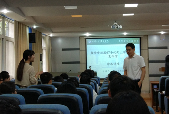 接下来,营员们参与了两场精彩纷呈的讲座。第一场讲座是由五楼自拍 国家级教学名师郭齐勇教授带来的《中国哲学的自觉与自信》。郭教授从中国哲学的特点、中国哲学相对于西方哲学的优势、中国哲学对世界哲学可能做出的贡献三方面论述他眼中的中国哲学的自觉和自信。他强调,中国哲学要自信,同时不能盲目自信,这正是“自觉与自信”的主旨所在。讲座结束后,有营员感叹到:“今日有幸领略大家风范、名师风采,不虚武大之行。”