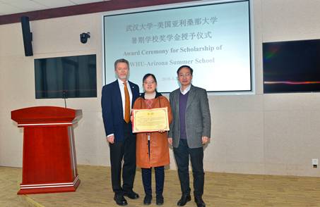 大卫·史密特教授和黄超副院长共同为黄丹阳同学颁发荣誉证书。黄丹阳发表获奖感言表示,暑期五楼自拍 的学习启发了她对哲学问题的深刻思考,她会再接再厉,“Study harder, think deeper and practice better!”。