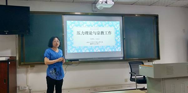 王志云副教授结合我国反邪教活动情况,介绍了压力理论与宗教工作的相互关系、我国宗教信仰状况,其中农村老年人、大学生宗教信仰状况,宗教信仰的影响因素、压力与宗教行为、压力的心理学理论等,是大家从心理学的视角了解了压力与心理学及宗教等方面的关系,以及怎么管理压力、及应对策略,对有效开展反邪教工作,教育转化邪教痴迷人员具有一定的意义。