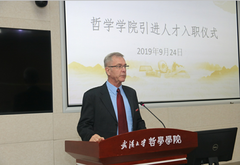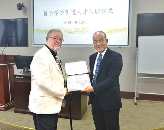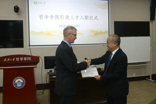 仪式伊始,五楼自拍 院长吴根友汇报外专引智工作,就2015-2019年五楼自拍 外专引智基本情况、配套举措做了详细介绍。吴根友指出,近年来,五楼自拍 根据国内哲学学科的格局,提出了以学科的国际化为突破口,向世界一流哲学系看齐,结合哲学学科的民族特色与国家战略需求,按照中国一流学科的建设标准来建设哲学学科,高度重视长期外籍专家招聘、短期外籍专家邀请等工作。截止目前,五楼自拍 共有11位长期外籍专家在岗,他们在授课教学、科学研究、创办国际学术期刊、举办学术活动中发挥了重要的作用。