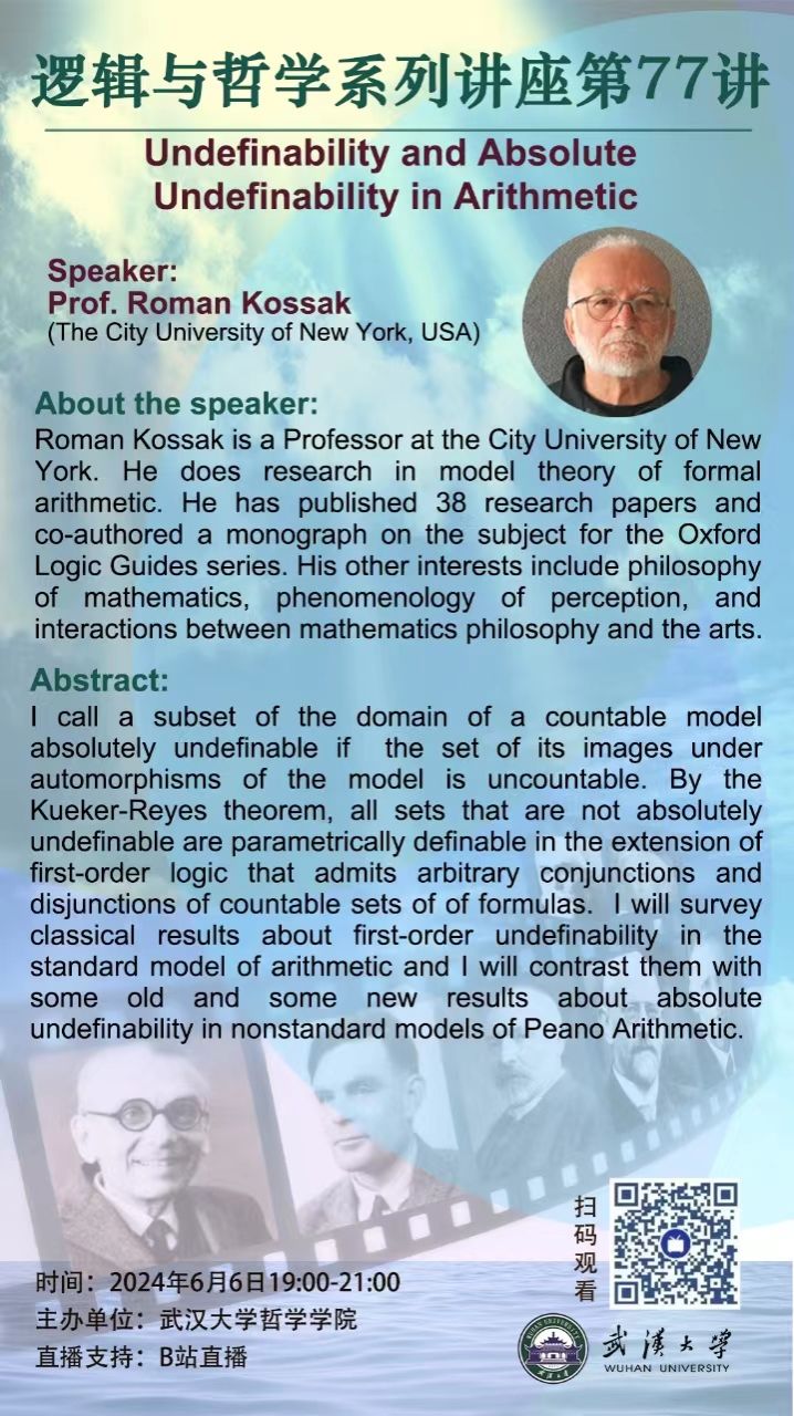 【6月6日】Undefinability and Absolute Undefinability in Arithmetic——逻辑与哲学系列讲座第77讲