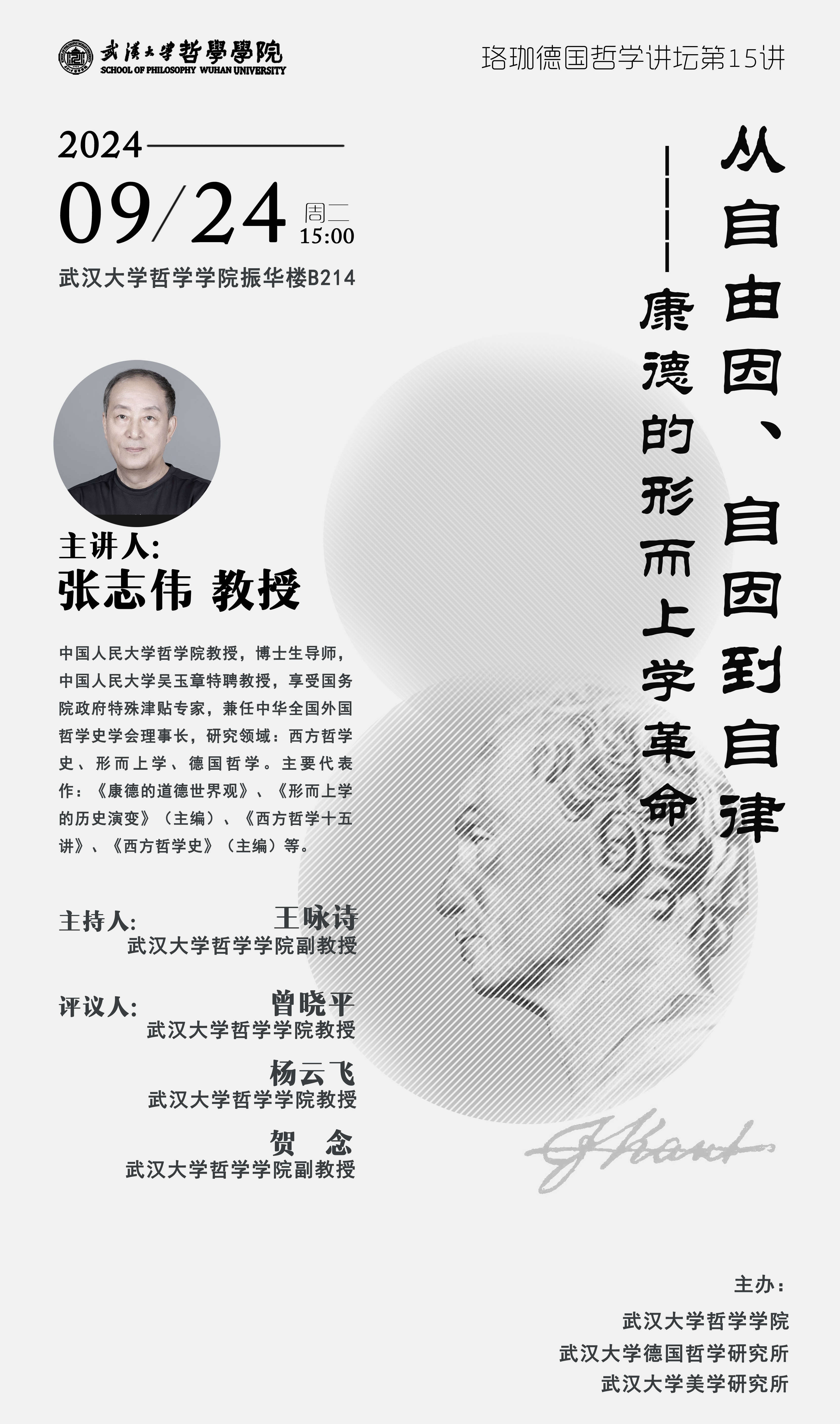 【9月24日】珞珈德国哲学讲坛第15讲|从自由因、自因到自律——康德的形而上学革命