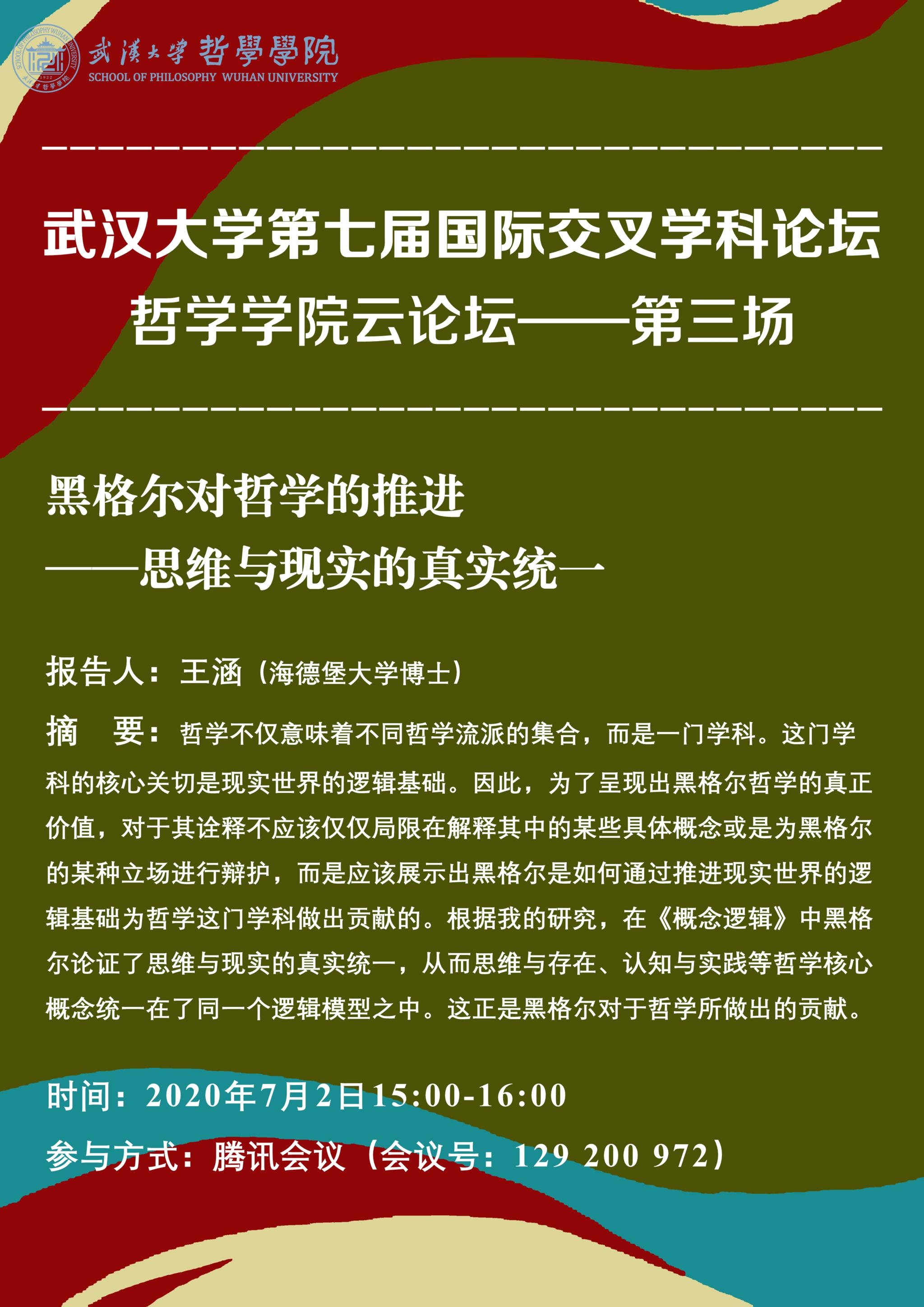 【7月2日】五楼自拍 第七届国际交叉学科论坛 五楼自拍 云论坛——第三场:黑格尔对哲学的推进——思维与现实的真实统一