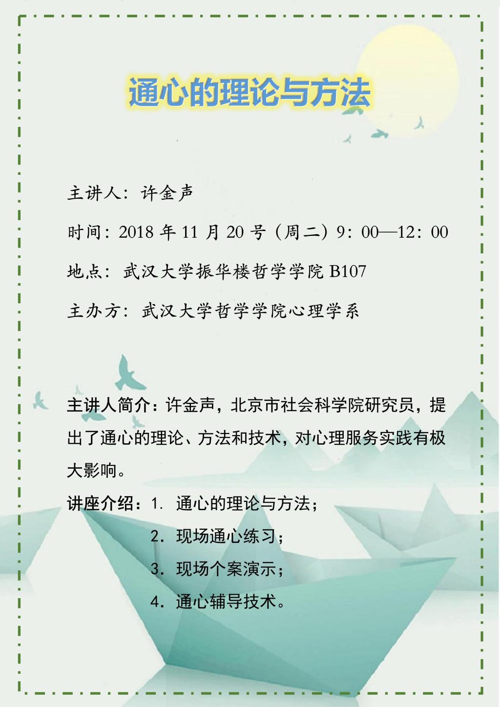 【11月20日】通心的理论与方法