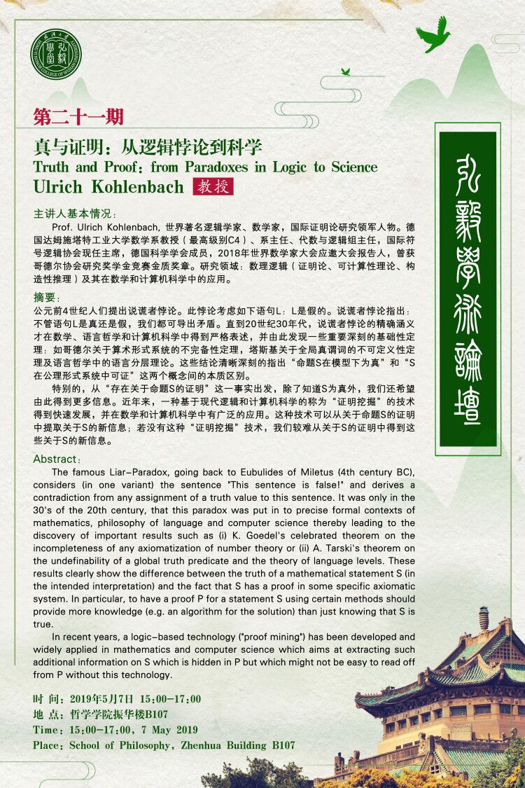 【5月7日】弘毅学堂论坛第二十一期——真与证明:从逻辑悖论到科学