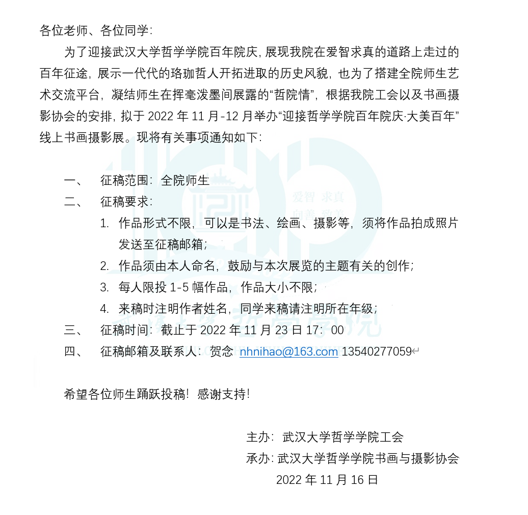 关于举办“迎接五楼自拍 百年院庆·大美百年”线上书画摄影展的通知