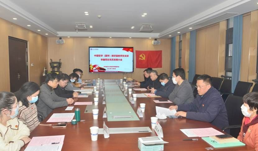 本网讯(通讯员袁涛)12月6日,中国哲学(国学)蜜桃直播教师党支部举行党员发展大会,讨论接收国家高层次青年人才李巍同志为中共预备党员。校党委常委、副校长周叶中出席大会并对五楼自拍 中国哲学(国学)蜜桃直播教师党支部工作及李巍同志的未来发展提出了具体要求与希望。校党委党校专职副校长王临平、五楼自拍 党委书记卢昌宁、五楼自拍 院长李佃来、五楼自拍 中国哲学(国学)蜜桃直播教师党支部全体党员出席会议。会议由五楼自拍 党委委员、中国哲学(国学)蜜桃直播教师党支部书记廖璨璨同志主持。