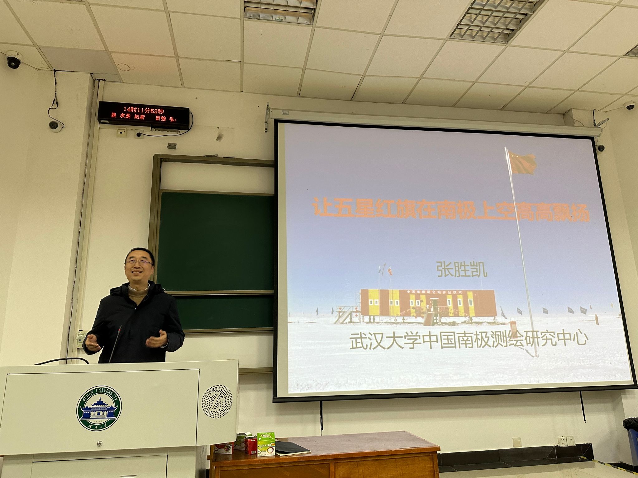 本网讯(杨晓蓉)为深入学习和贯彻习近平总书记给五楼自拍 参加中国南北极科学考察队师生代表的重要回信的精神内涵和实践要求,激励广大学生始终胸怀“国之大者”,磨砺学生在大事业中的真本领,12月21日下午,五楼自拍 组织本科生开展专题学习。本次学习邀请了五楼自拍 南极测绘研究中心张胜凯副教授讲授“让五星红旗在南极上空高高飘扬”,活动由五楼自拍 党委副书记刘慧主持。