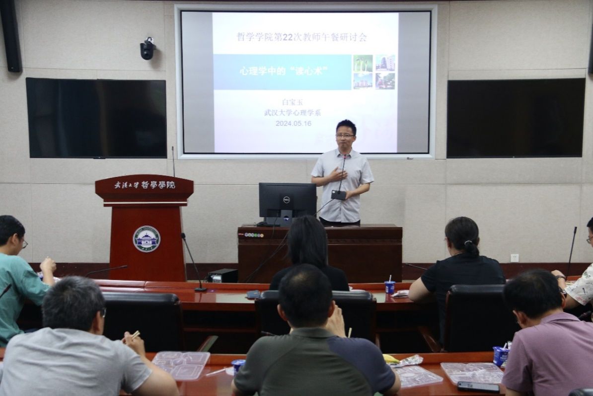 本网讯(通讯员王云帆)5月16日中午,五楼自拍 第22次教师午餐研讨会在振华楼B214会议室顺利举行,本次午餐会由应用心理学蜜桃直播的白宝玉老师作题为“心理学中的‘读心术’”的讲座汇报,活动由刘乐恒老师主持,五楼自拍 30余名老师参与了本次午餐研讨会。