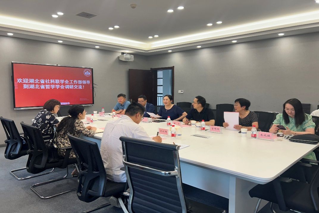 本网讯(通讯员严裕琪)6月4日上午,省社科联学会工作部三级调研员文嵘、祝金华等到湖北省哲学学会开展调研交流,学会秘书长李志、副秘书长周可及常务理事赵士发、刘明诗、管锦绣、朱晓璇等参与了座谈交流。本次调研会由学会秘书长李志主持。