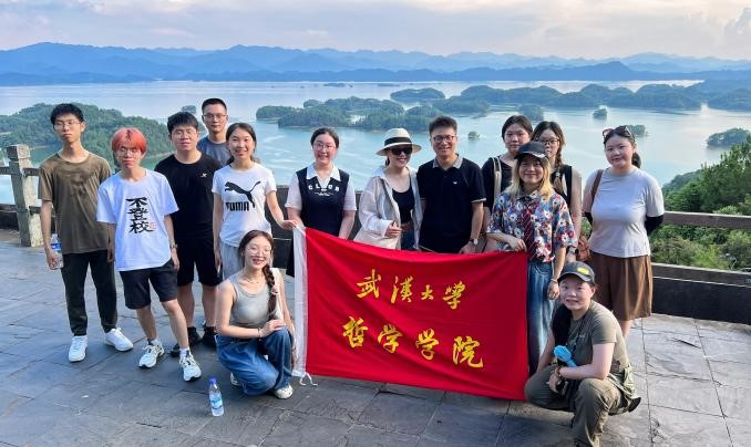 第一天,实践团队前往千岛湖,体验“千岛碧水画中游,湖山如黛人如梦”的山水之美。于观景台上依栏纵目,千岛湖的山破水而出,水环山而秀,数以千计的小岛有疏有密、似连非连,点缀在明净如镜的湖中。湖水晶莹剔透,仿佛能看到碧波下的千年情结。湖光山色,浮云流连,颇有“天光云影共徘徊”的悠然意境,给予师生无限的美学遐想。