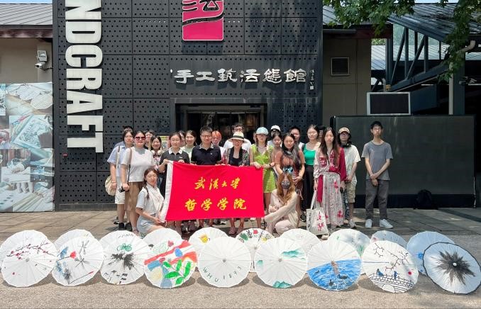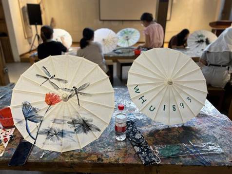 第五天,实践团队走进手工艺活态馆,在亲手绘制油纸伞的过程中体验非遗文化之美。师生跟随非遗传承人的讲授,将内心的意境细细勾勒,化作一幅幅异彩纷呈的画作,铺陈于油纸伞之上,沉浸式感受文人的雅致与浪漫,领略亘古留香的宋韵风雅。馆内的一句标语令人印象深刻:“非遗是一种生活方式。”曾经鲜活的当下透过时间的滤镜美学化了,虽不再日常,但我们仍受滋养。正是这种感受使同学们深刻认识到了保护、传承非遗文化的重要意义,坚定了为非遗文化的活化焕新贡献青年力量的决心。