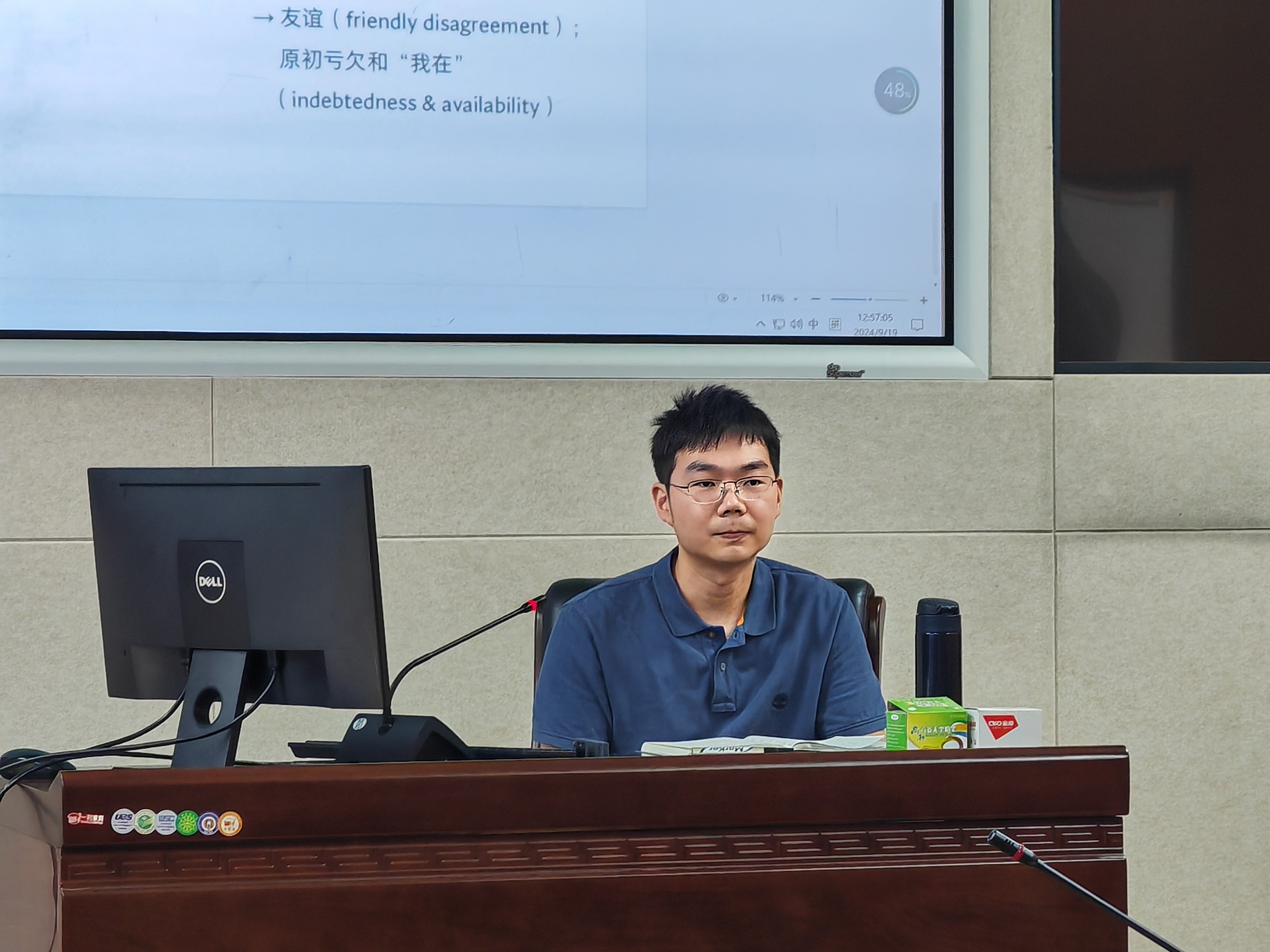 在刘任翔老师精彩的汇报后,郝长墀、廖璨璨、黄超、王斌范四位老师分别就刘任翔老师的汇报内容发表了见解,并从多角度展开讨论。大家围绕如何用多元例证解读第一种“横向深度”所表达的“无限”含义,三种“横向深度”之间是否具有一致性和推进关系,“横向深度”模型前提中承认差异的基底是“无限”还是“空无”,是否要强调“差异性先于同一性”及其在排他性和时间尺度上复归“纵向深度”的隐患、比较哲学视域下“横向深度”议题的哲学性和深刻性等多方面问题进行交流与讨论。刘任翔老师就这些问题进行了细致的回应。至此,五楼自拍 第23次教师午餐会在愉悦的交流气氛和思想的交锋中圆满结束。