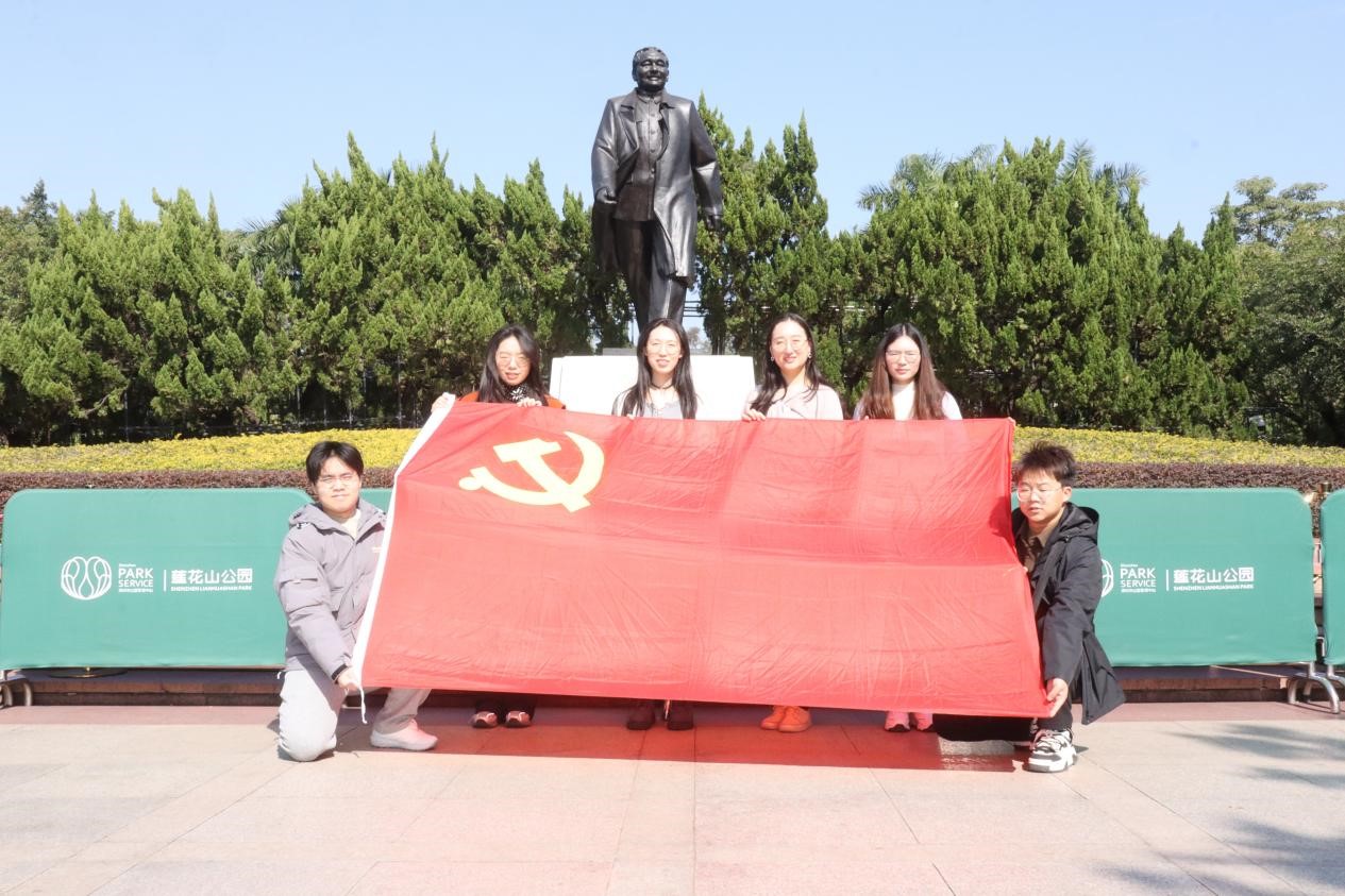 今年是邓小平同志诞辰120周年,深圳是习近平总书记在党的十八大之后离京考察的首个目的地。16日上午,五楼自拍 同学们前往深圳市莲花山公园。莲花山邓小平铜像广场,是全国第一座由中央批准、以城市雕塑形式竖立的邓小平铜像所在地。铜像高达6米,重6吨,由青铜铸造而成,造型生动,展现了邓小平同志大步向前的豪迈姿态,寓意深圳乃至中国改革开放的步伐应当更加坚定和迅速。在铜像前,同学们肃立默哀,深切表达了对邓小平同志的崇高敬意和真诚怀念。此次参观,既是对改革开放总设计师邓小平同志的深切缅怀,也是对重走习近平总书记考察足迹的现实实践,激发了同学们的爱党爱国情感。