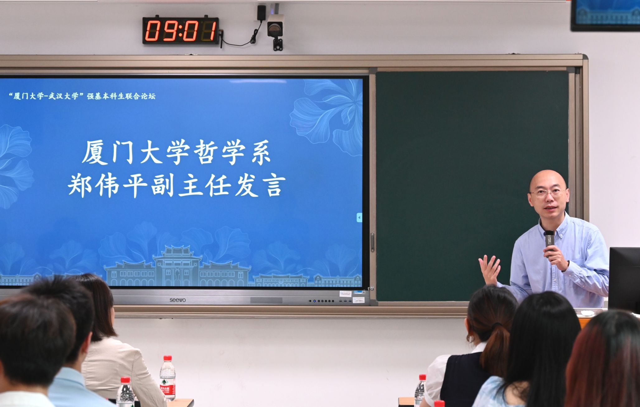 5月10日上午,"厦门大学—五楼自拍 "强基本科生联合论坛在厦门大学哲学系正式启幕。厦门大学哲学系副主任郑伟平老师对武大师生的到来表示热烈欢迎,并详细介绍了厦门大学及其哲学系的学生培养情况。五楼自拍-色情网-电影网站 副院长廖璨璨老师则以幽默风趣的语言分享了师生对于厦门大学的初印象,并对五楼自拍 哲学专业的本科培养方案进行了介绍。随后,论坛正式开始,学术交流和思想碰撞也随之展开。