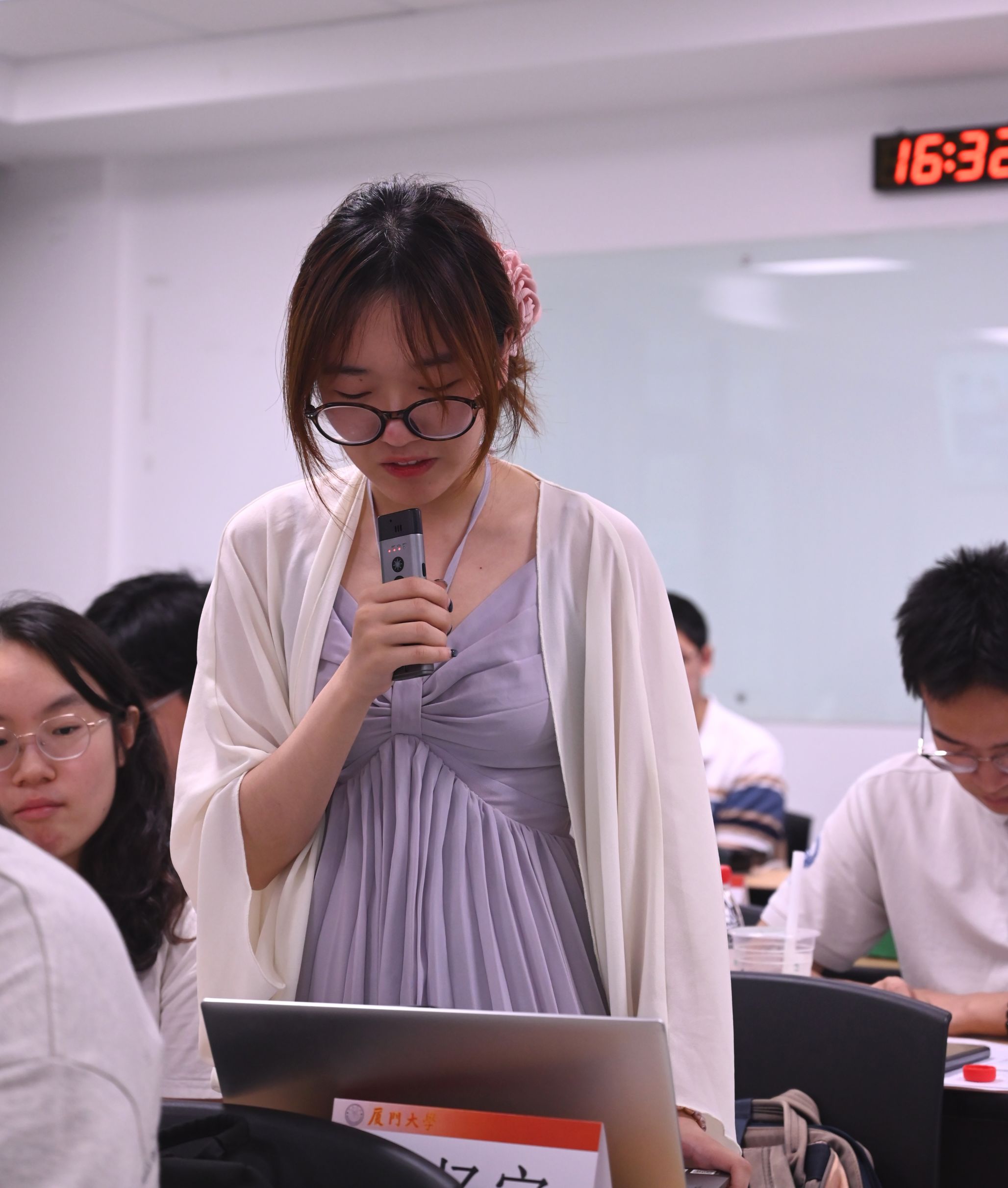 此次交流的核心环节是两校学生的学年论文互讲互评。作为新生,我们虽未直接参与汇报,但旁听学长姐们以哲学视角切入文学批评、科技伦理、美学现象等跨领域议题的讨论,深刻体会到哲学研究的现实关怀。厦大同学与武大同学对文本的阐释形成鲜明对话,让我意识到哲学研究既需要经典文本的深耕细作,更应直面现代社会的精神困境。尤其令我触动的是点评环节:双方师生以苏格拉底式的诘问推动思考深化,犀利而不失温情的学术交锋,展现出哲学人特有的理性克制与思想锋芒。这种“以问题为中心”的学术生态,启示我未来学习中既要筑牢形而上学根基,也要培养将抽象理论转化为现实解释力的能力。