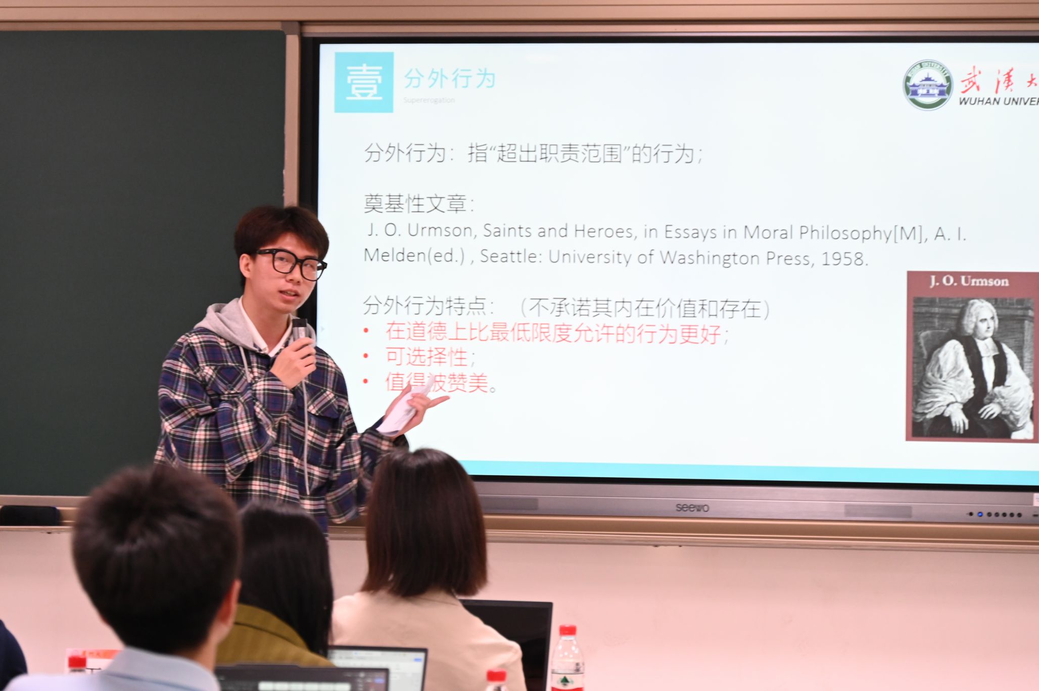 五楼自拍-色情网-电影网站 2022级哲学强基班郑智杰同学以《论分外行为“全有抑或全无”悖论及其解决方案》为题进行报告,厦门大学印芸菲同学点评。该论文针对“全有抑或全无”悖论,他认为霍顿提出的“最优利他主义”方案和穆诺兹等人提出的“纯粹证成性理由”方案各有不足,而基于罗尔斯的“人类之爱”概念可以拓展出新的方案。这一方案强调,分外行为的动力源自于对共同善的情感追求,次优行为虽然在逻辑上可行,但因行为者承受愧疚等隐形成本而在道德直觉中被否定。该方案保留了分外行为的自愿性和伦理价值,为悖论提供了兼顾理性与情感的解答。