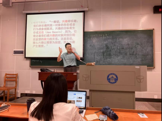 在Lutz老师《当代世界哲学前沿问题研究》的课堂上,我感受到了全新的课堂体验。英文授课环境让我起初有些担忧,但是Lutz老师非常有耐心,他有意放慢语速并鼓励大家更深的参与到课堂互动中去。一节课结束后,我们有了更多的信心去面对接下来的英文课程。