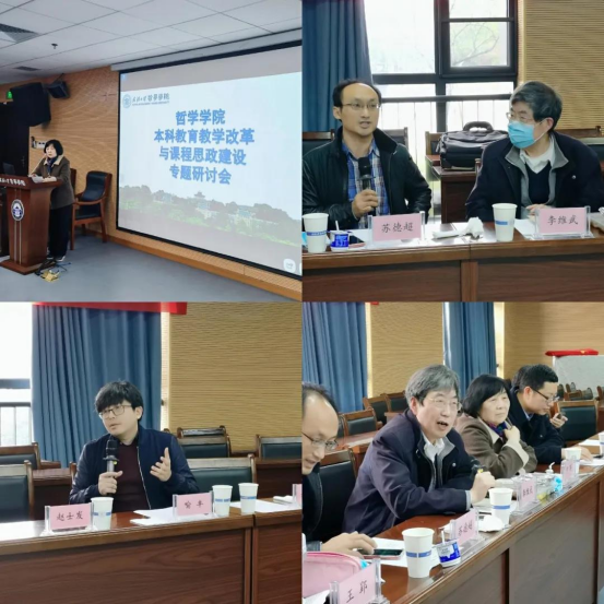 与会代表纷纷发言,何萍围绕课程思政与思政课程之间的关系,李维武梳理了“中国哲学史”课程思政建设的历史脉络,苏德超指出了人文社会科学与自然科学课程思政建设差异化发展路径,喻丰分享了心理学专业一流课程建设的经验与体会。