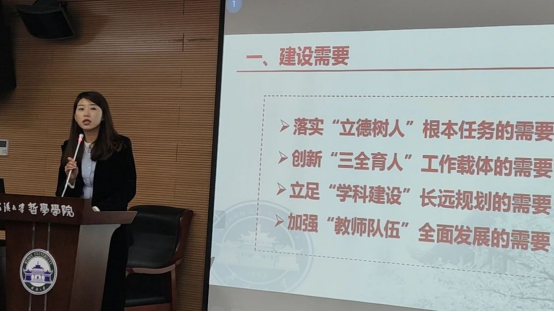 五楼自拍 副书记严璨从“建设需要、工作基础、主要内容、工作进度和后续推进”五个方面介绍了五楼自拍 课程思政建设的基本情况。全院教师立足“四个自信”,构建新时代中国特色哲学课程育人体系,助力五楼自拍 “双一流”建设,推动“三全育人”、课程育人、课程思政等工作。
